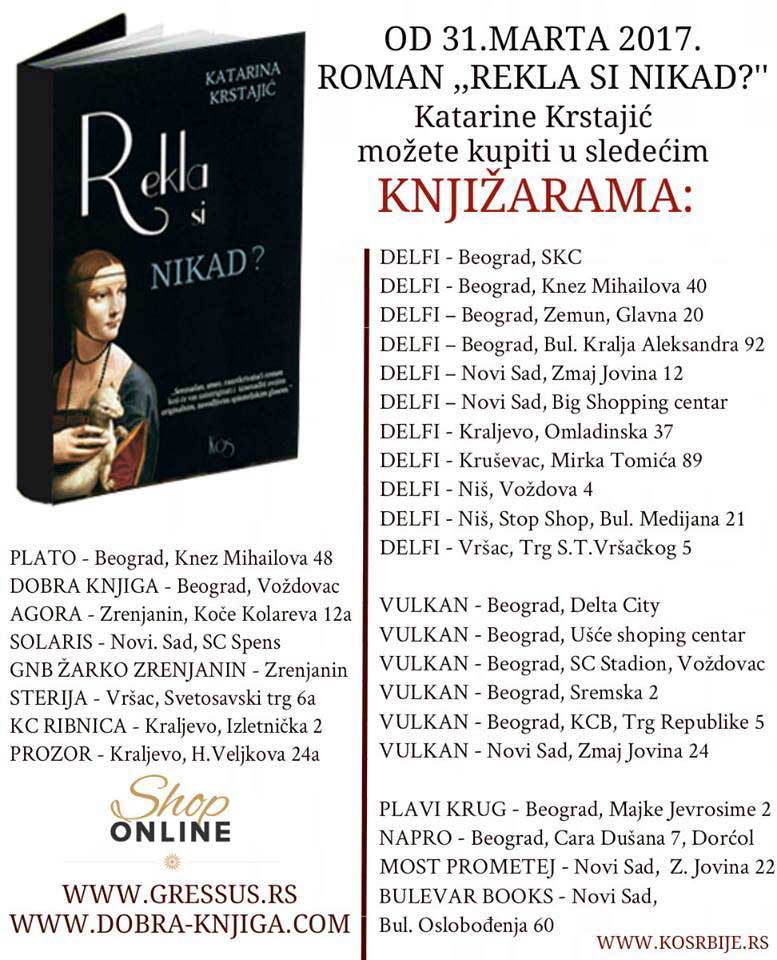 Knjiga „Rekla si nikad?“ nastala je spontano i neplanski. „Izašla“ je u jednom dahu iz moje duše, u trenutku kada su životne okolnosti od mene zahtevale da budem veoma jaka. Tek kasnije sam shvatila da mi je ona bila podrška „sa neba“. Kroz nju sam pobegla u novi svet, koji sam sama kreirala. U tom svetu sam plakala i smejala se družeći se sa Marijom, glavnom junakinjom romana. Tih simboličnih 9 meseci, koliko je knjiga stvarana, nisam mogla da se odvojim od tastature. To je valjda tako kada te inspiracija obgrli jako, a moja inspiracija je bila realna osoba, koja je nekada davno (kao na početku svake bajke) postojala u mom životu. Između ovih korica nalazi se jedno poglavlje junakinjinog života i važno iskustvo koje je stekla kroz zabranjenu ljubav. Ukoliko ova knjiga barem jednoj osobi pomogne da donese bolju životnu odluku, ili ukoliko spreči neželjene situacije, onda će njeno postojanje dobiti pun smisao.