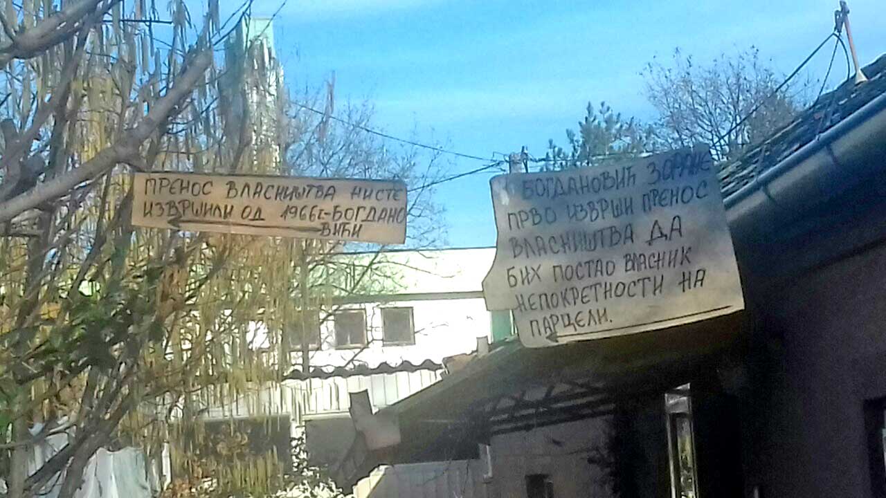 Šetajući ulicama lepog grada Šapca kraj Save, u dvorištu prizemne kuće ugledala sam dva viseća natpisa koja su mi privukla pažnju. U pitanju su bile poruke, očito upućene komšiji koji živi na korak od „ljutog“ domaćina.